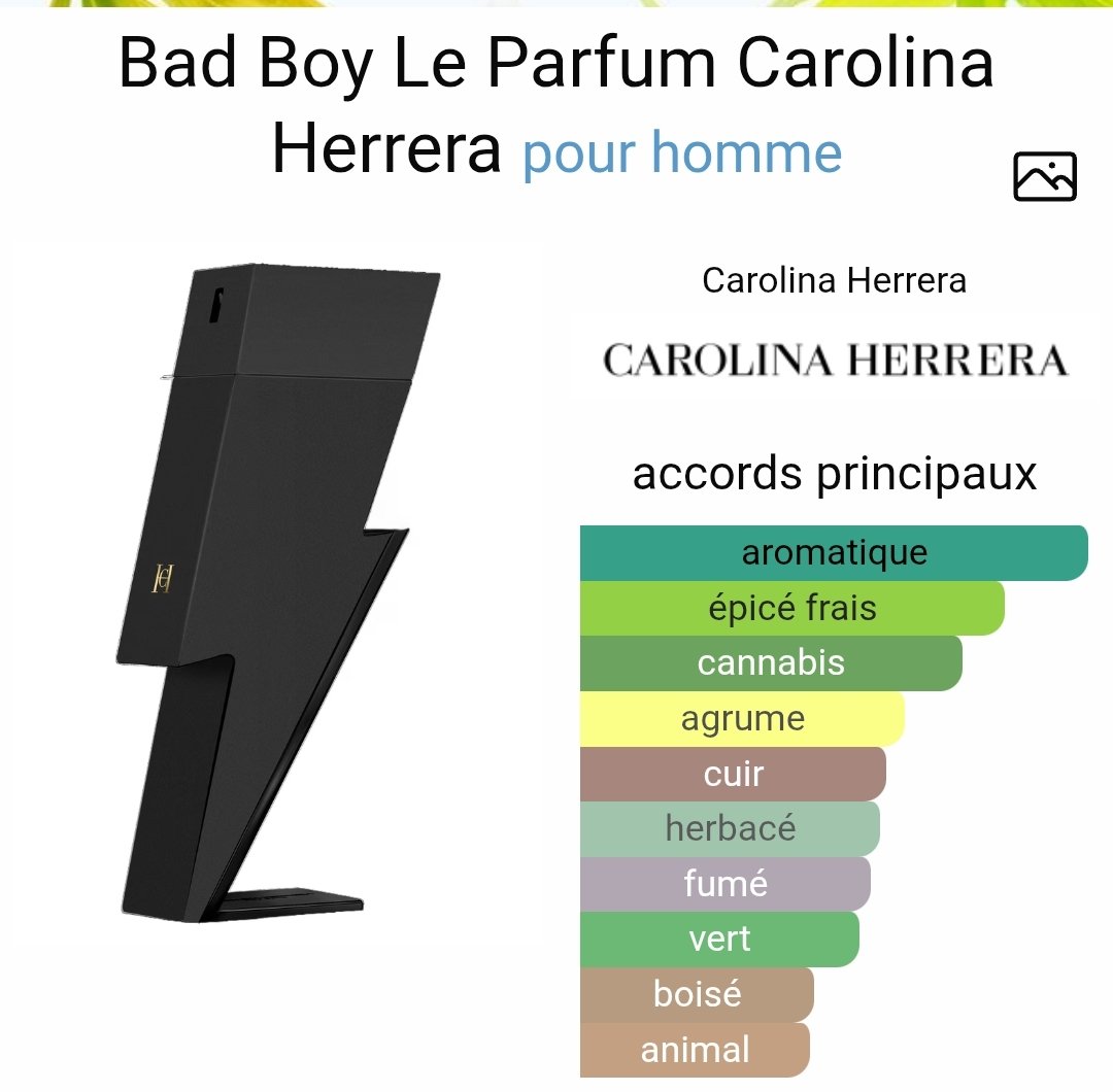 Bad Boy Le Parfum de Carolina Herrera est un parfum Cuir pour homme. Bad Boy Le Parfum a été lancé en 2021. Bad Boy Le Parfum a été créé par Fanny Bal, Bruno Jovanovic et Nicolas Beaulieu. Les notes de tête sont Cannabis et Pamplemousse; les notes de coeur sont Poivre noir et Géranium; les notes de fond sont Cuir et Vétiver.